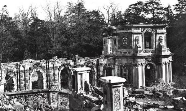 照片是英国摄影家费利斯比特,在1860年北京被攻陷前拍摄,据专家推断应为圆明园旧景。这张照片在英国苏富比拍卖行,以20万英镑上拍。