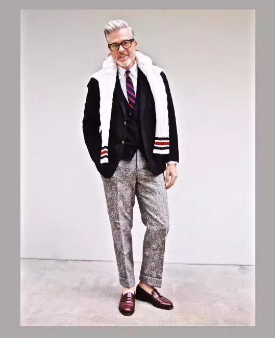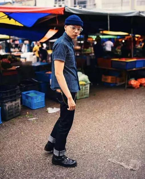 可以理解为47裤的倒版,很多人会称之为“摩登直筒”或者英式修身裤。这种裤子一般都是高腰,大腿纤细,小腿笔直,舒适性很强。是一种很有商业感的王霸裤,老少皆宜。比较适合匡威和靴子。 其实所谓裤型就是在裤子长度合适的基础上的明显轮廓。比如丰海175cm的时候,穿一条长120cm的裤子,没有裤型。所以不要偷懒,等裤子长了再换。不知道如何选择裤子尺码的同学可以参考我之前的文章《底码指南》。(点击前面蓝字查看推文)