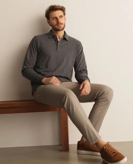灰色斜纹棉布裤因为是中性色调,所以可以搭配很多颜色和款式。你可以将它们与几乎任何服装类别搭配。搭配黑色衬衫和浅蓝色牛津纽扣衬衫,打造休闲造型。也可以搭配简单的t恤或POLO衫。