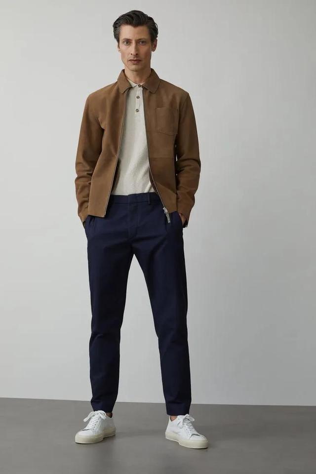 藏青色斜纹休闲裤的穿法有很多种。其实这个颜色的牛仔裤是你休闲单品的最佳选择之一。