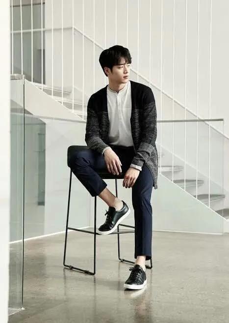 如果想打造现代学院风,不妨搭配牛津衬衫和运动衫,一双休闲运动鞋,打造更容错的风格。