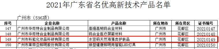 民族品牌复兴,优质的品质和技术是本源,科技创新是打造产品最有效的技术壁垒。高质量的品牌发展通过质量、价值、技术、情怀和社会责任赢得中国消费者的真正青睐。 近日,广东省高新技术企业协会公布了2021年广东省高新技术名优产品名单。丹姿集团水码品牌的“水码天然海藻护肤品”一举获此殊荣,水码的科研实力再次得到权威认可。 高新技术产品是指符合国家和省高新技术重点领域、技术领域和产品参考目录,并在技术、研发、经济和社会效益等方面具有优势的全新产品。2020年起,评选要求有所刷新,对产品的技术水平和创新性有了更高、更细致的要求。对“高精度”定位、创新性强、技术先进、质量安全可靠、市场前景好的产品进行了层层严格筛选。据悉,该省化妆品企业入选的高新技术产品不超过10种,可谓是试水颇多。而“水密码天然海藻护肤品”又一次凭借硬核实力脱颖而出,入选2021年广东省著名高新技术产品。
