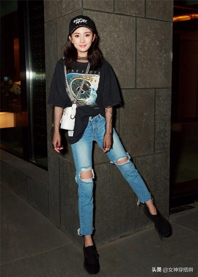看,t恤t恤 杨幂选择宽松的短t恤搭配修身的长t恤。这种穿着方式是最常见的,甚至在迪丽热巴也是如此。虽然是简单的t恤,但是如果要细分的话,可以分为干净t恤,干净t恤印花t恤,网布t恤,款式不同。