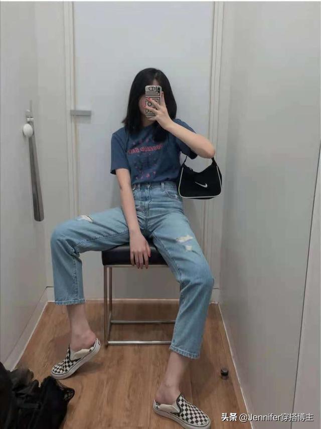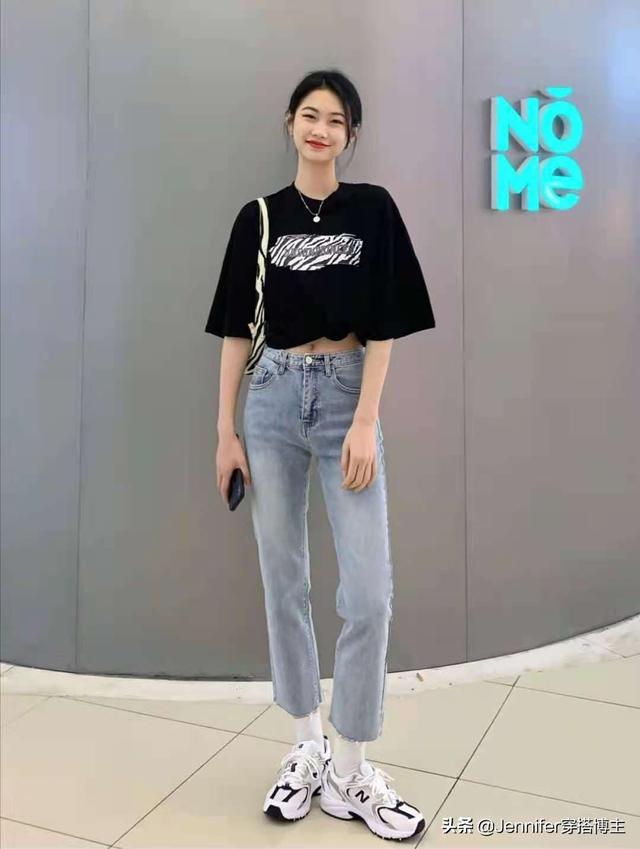 8.jpg 这套衣服是日常生活中最简单的装扮。蓝色牛仔裤搭配黑色短袖。搭配的时候稍微注意了一点,就是把短袖扎起来,这样腿在视觉上会比较长,或者遵循“上短下长”的穿着规律。 |