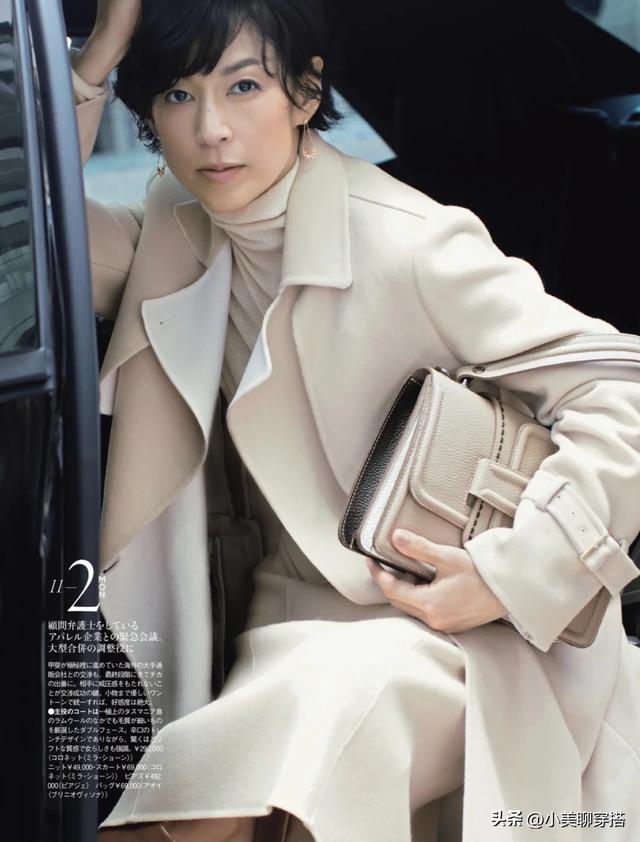 秋冬,40岁以上的成熟女性,大地色系也是特别推荐的色系。她们温暖有力,沉稳低调,非常符合一个40岁女人的气质,手头有一种高级感。 卡其布 很多女生喜欢大地色,但是有时候因为怕它肤色暗沉而不敢穿。对于肤色偏黄偏黑的女生,可以选择温和的卡其色,这是一种介于驼色和米色之间的颜色,白色高级。 卡其色风衣搭配白色高领毛衣,这个配色特别白,又有一种冷疏离的味道,很有高级感。搭配浅驼色阔腿裤,整套一个色系,简约又高贵。