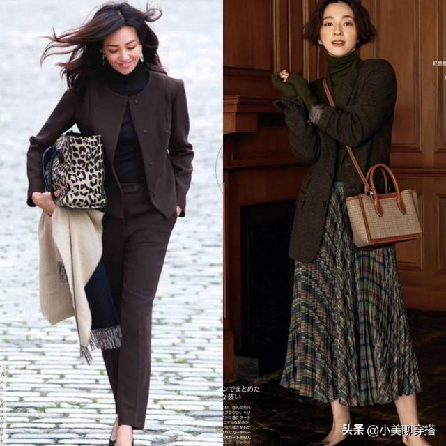 女人到了40岁,就变得更有质感了。她失去了青春的轻浮,获得了一些低调温柔的魅力,让人觉得很温柔很有魅力。 40岁以后,很多女生害怕被别人叫“油腻的阿姨”,就想尽办法在身上做五颜六色的衣服,以为这样会显得年轻。事实上,他们不是。穿太花哨的衣服会显得显老,搭配不当会让人觉得廉价。 成熟女性的衣服要体现出温柔、优雅、端庄、低调的知性气质,所以我们要在配色上下功夫,这是最容易营造高级感的方法之一。 所以,这一期我就来详细说说40岁女性的穿着和配色技巧。相信看完会帮你穿出全部。 黑色 要说最能表现高级感的颜色,那就是经典的黑白灰。非彩色一直是最百搭也最容易出错的颜色,它们有自己的高级质感,让高级感无论怎么穿都很自然。 很多女生觉得40岁以后,穿黑色显得老了。其实并不是。我们可以选择搭配白色,增加一些新鲜感,打破黑色的沉闷。很减龄,不会错。 对于职场女生来说,黑色是首选。秋天选择硬朗的黑色西装,穿一件白色毛衣,简单的黑白搭配,显得灵动利落,知性优雅,看起来很高级。