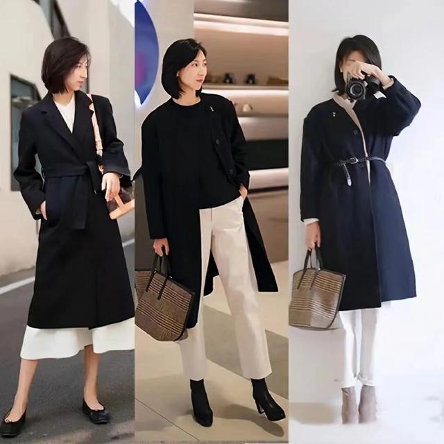 02.浅色深色 颜色的对比可以增强穿着的层次感。浅色被毛,搭配亮色被毛,和浅色被毛,搭配深色被毛,其实效果是一样的。唯一不同的是,浅色被毛和亮色被毛的组合清新减龄,深色被毛的组合优雅从容。 米色、浅灰色和浅棕色是常见的浅色。搭配黑色打底衫或黑色长靴,整体层次感更强,视觉对比非常清晰。优雅从容的气质溢于言表,更适合职场女性的搭配,高级又典范。 三:黑色大衣配色 黑大衣是最高级的气场大衣之一。黑色大衣的配色需要避免各种花哨的图案,利用高级的简单撞色,营造出更加精致时尚的味道。黑色外套的配色看起来很简单,但需要更多的用心。