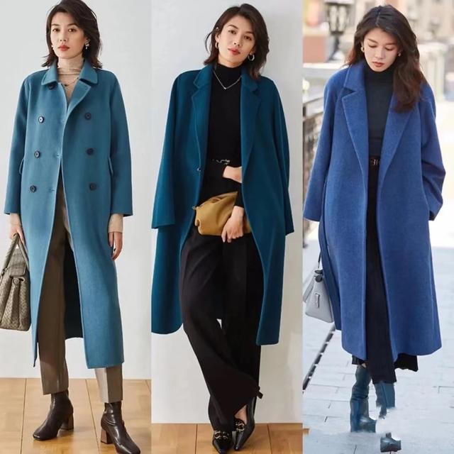 02.亮色外套深色外套 亮色大衣的亮度和对比度都很强,实在不容易驾驭,因为太亮了。所以在内饰的选择上,建议你多搭配深色。深色作为内置,可以中和亮色的闪耀,让整体气质更高级内敛。 以蓝色调为主的色调,搭配 黑色内搭,整体风格高级雅致。深色系的内搭,配上亮色系大衣,有着明艳动人的一面,也有着高级内敛的雅致。