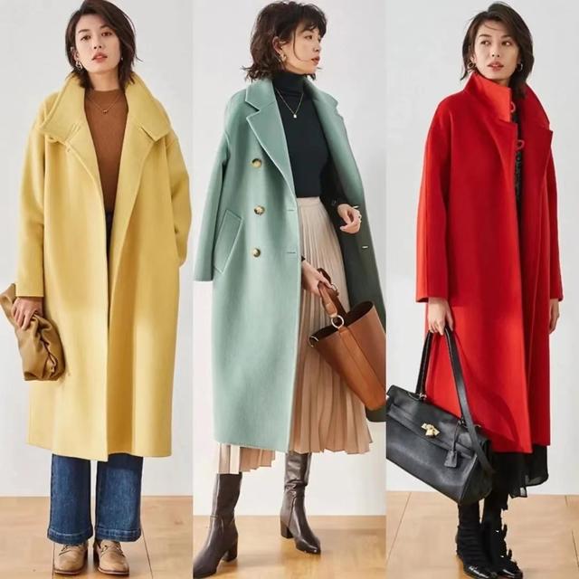 02,黑色对比色 能和黑色形成对比的一定是白色。纯白的亮度非常高,黑色大衣的搭配透露出一种酷酷的高级风,有一种霸气的优越感。如果你的气质没有那么高级出众,可以结合一些米白色的搭配,显得更温柔知性。 米九分裤和黑色大衣的搭配,弱化了整个黑色系的沉闷感,勾勒出腿部线条,将身材比例点缀成更高挑的秀场。这种对比色的搭配方式优雅而高级,也是一种非常利落的搭配。 四:亮色大衣的配色 经典的彩色大衣,虽然高档百搭,但也缺乏独特的闪耀之美。年轻女孩,或者想要更多彩外观的女性,可以尝试明亮的外套。亮色大衣能提升整体对比,上身效果抢眼闪亮。