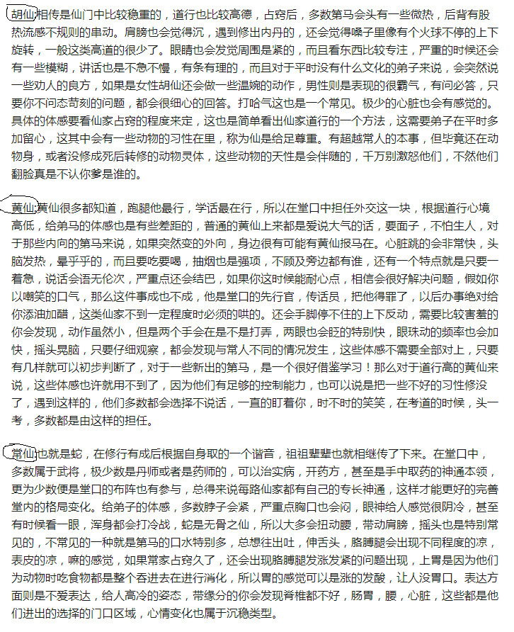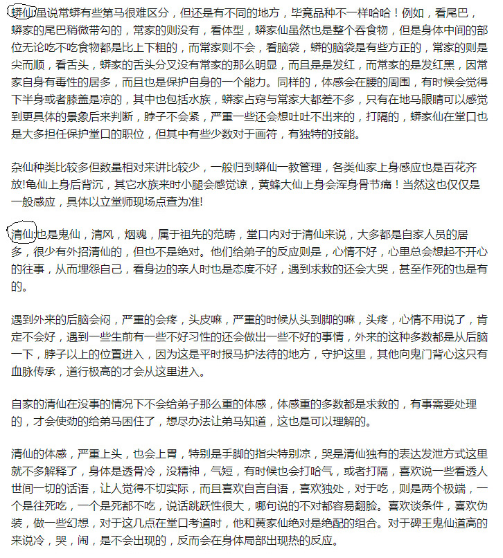哪个仙家上身抽烟 在民间,很多出马仙都是女性居多,大部分都是中年妇女,当然也有从年轻的时候就当出马仙的年纪很大的老太太,很多出马仙在出山办事的时候,主家把香点燃供上了,酒菜也供上了,出马仙就会点上一颗烟,有的是一颗接一颗的抽烟,那么什么仙家上身会抽烟呢,据民间传说,黄仙上身会抽烟,不过也有人表示,抽不抽烟只是出马仙的个人嗜好,更有人认为出马仙抽烟也只是为了营造糊弄人的假象,不可信。 ![]() 那么民间传说五大仙家上身后的真实反映是怎样的呢??让我们看一个声称自己是出马仙的人的描述: ![]() ![]() 给仙家点烟如何看烟灰 在民间,关于抽烟的出马仙还有很多讲究,据民间的老人讲,主家请出马仙出堂办事,给出马仙点上香烟之后,可以通过出马仙抽烟时烟灰的样子看出很多事情了。如果出马仙抽烟的时候烟灰很长了都不掉落,那就说明家中死去亲人的灵魂回到了家里久久不愿离去,如果是这样的话,对于活着的人来说是非常不利的,会导致主人破财,或者是家中的女主人常年被疾病缠身,一定要请出马仙出堂送走。 还有一种情况就是烟灰掉落后不散依旧是完整的,这就预示着主人财运正旺,如果是生意人,近期生意会有贵人相助、有大起色,如果愿望达成之后,还要再请仙家出堂,为仙家办一次答谢宴。关于出马仙,民间还有很多故事,但是至于有没有传说中那么厉害就不得而知了。 ![]() |