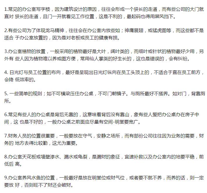 办公桌身后放什么对工作好, 办公桌身后放点绿植对工作好,大家都知道眼睛累了看点绿色的东西会比较轻松,而且绿植有净化空气,提高空气清新度,让心情愉悦的作用,很多人的办公桌上面都会摆放一些绿植,而办公桌身后放点绿植也是很好的。 办公桌身后摆放绿植还会有生财的作用,绿植代表着旺盛的生命力,摆放在办公桌身后也会有助力生财旺财的作用,所以绿植是非常不错的办公桌周围摆放物件。 当然不要摆放仙人掌之类的会扎伤人的东西,比较温柔的绿萝就很不错,要选择好伺候的,不容易死的,但是也要好好照顾,勤劳浇水,养的枯黄黄的不精神就不好了。 办公桌朝向的最佳方位是哪边? 办公桌朝向不同所代表的的含义也不同,严格来说没有最佳,每一个方位有每一个方位的好,只是对应的办公桌朝向可以有助于办公的人员更好的工作。 最佳的方位应该是坐西向东吧,这样跟着太阳东升西落的方位就比较好了,早上可以沐浴阳光温暖舒适,下午可以背靠阳光不刺眼,拉个窗帘就很凉快了,而且早上朝气蓬勃的空气第一时间接触到办公桌,工作人员也会动力十足,精神力更好。 向西的办公桌是主招财的,这个方位可以安排财物人员来坐,西边主财这个是风水上比较悠久的说法。北边适合管理人员,南边适合新员工或者人事部人员,在合适的位置上安排合适的工作岗位,摆放合适的办公桌是比较好的,这其实也就是最佳方位了。 |