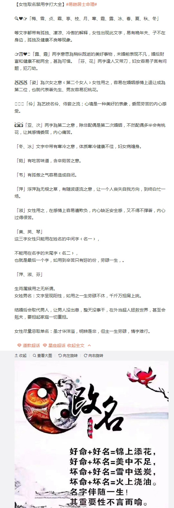 前言,咱们先看看咱们国家有钱的一批人最后一个字都是几声,马云、马化腾、李彦宏、王健林,这些人最后一个字都是二声哟! 现在很多孩子的名字都是三字,很少有双字的,有传言称是因为国家规定不能用双字,其实国家没有这样规定的,只是因为两字的重名率太高,所以为了能够控制重名率,因此就鼓励家长用三字起名,所以现在用两字作为名字的宝宝越来越少了。 在民间的一些说法中,名字的最后一个字不能用第四声的字,因为第四声是降音,据说会影响运势,一般都会有第二声,不过也有种说法,就是名字和生辰八字有关,所以也有人会让大师按照自身情况来起名,因此不管是第几声,都是不错的,所以取名字最后一个字第几声都可以,没有最好之说,只有最适合。 一般来说,晚辈的名字是不能和长辈重复的,我们国家自古就有“为尊者讳”之说,古代如果和贵人、长辈名字一样的话,就会改名,现在虽然不是古代,但是对于长辈依然是尊重的,所以不会让小辈的名字和长辈齐名,而且就算是同辈,重名也是要避免的,毕竟谁也不希望自己家的孩子和亲戚家孩子名字一样。 ![]() |