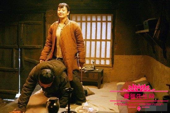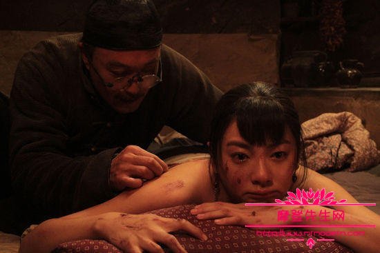 还有一场戏,是张雨绮扮演的田小娥被族人打,吴刚扮演的鹿子霖给裸背的她抹药。