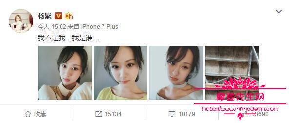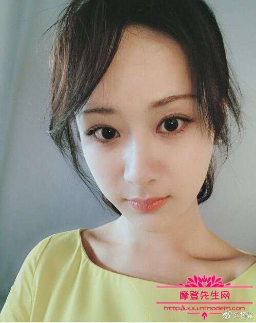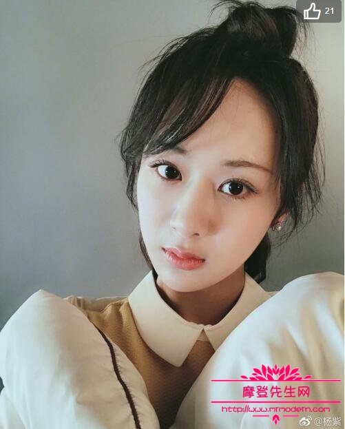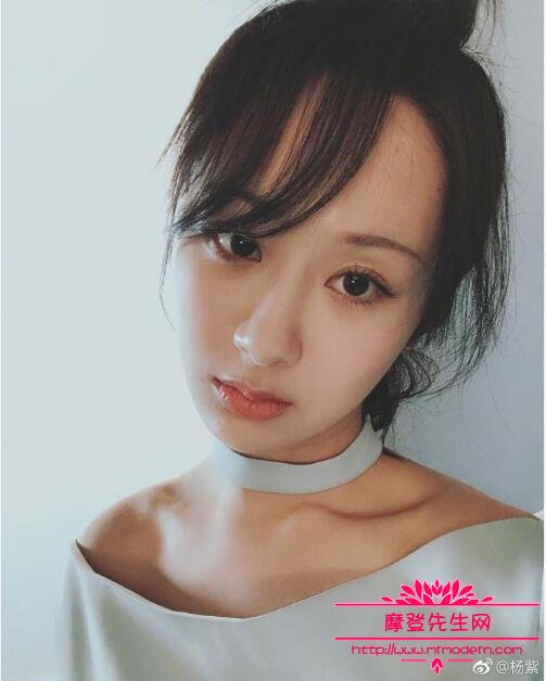 相片中,杨紫扎着丸子头,萌萌哒,最美的是蜡笔小新的眉毛不见了,变成了细细的眉毛,这样子更有气质啊!