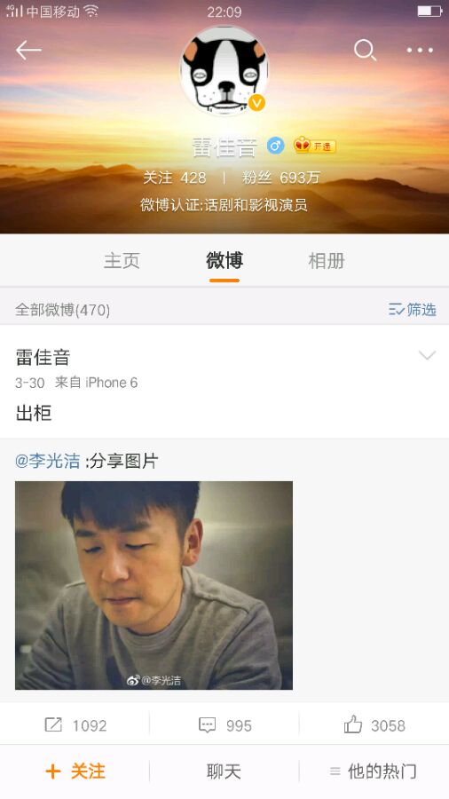 没想到,最近居然有两位男明星公开在微博上表示出柜,这两位男明星一个是雷佳音,一个是李光洁,都是内地著名演员。而且,两人还有甜蜜互动,雷佳音发微博说出柜,李光洁马上就表态了,看起来两个人好像真像那么回事。