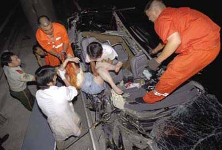 ![]() 据警方透露,当时车辆碰撞相当剧烈,胡歌坐的越野车车头几乎看不出原有的形状(上图),车里面的座位上血迹斑斑。而据嘉兴高速路段交警介绍,当晚6F测速仪拍下的所有照片中,没有发现胡歌乘坐的越野车,排除了超速的可能。胡歌助理称,自己当时的车速应该在100到110公里/小时,出事是因为这几天没有休息好,精神状态较差。当晚胡歌从横店连夜赶回上海办事,前半段车程由胡歌驾驶,后半段才换上了自己。因此警方初步结论,事故是由于司机的疲劳驾驶所导致。 胡歌车祸现场图片曝光