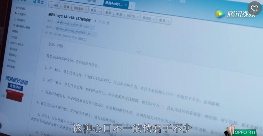 《欢乐颂2》因为小邱不是处女,遭到的应勤的嫌弃并分手,邱莹莹的感情因此又大受伤害,安迪与曲筱绡看不过对应勤大打出手,事后,小邱生病,应勤帮忙照顾,安迪发现两人还是很有感情的,所以借着要给应勤道歉的机会,点拨下应勤自身的错误。而这个道歉邮件的内容有理有据,逻辑性极强,可谓神来之笔!小编只想说!安迪!请收下我的膝盖!