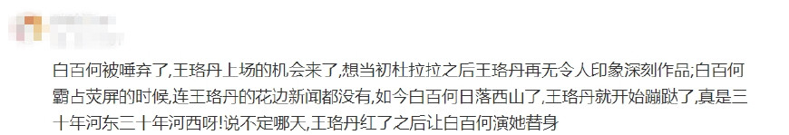 有网友感叹:真是三十年河东,三十年河西。白百何出事了,王珞丹又火起来了。