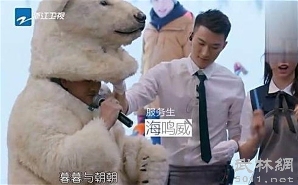 难得有一个镜头,也是因为扮了一只熊,全程没露脸。 于是大家纷纷感叹,当年海鸣威也是火过一阵子的,现在怎么会沦落到要和素人一起演服务员呢。 而关于海鸣威为何无法走红,毒舌女王金星曾在海鸣威参加《舞林大会》时就直接说:“你真的不要用这个艺名,人家有个作家叫海明威呢,你会被这个名字压死,五百年也翻不了身。”