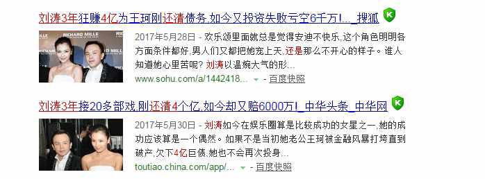王珂破产后欠下多少钱? 刘涛2010年复出拍戏,三年来可谓不眠不休,每年只有短短的十几天可以与家人团聚,在这样的情况下终于还清了王珂破产欠下的四亿元债务。 但是如今刘涛已近四十岁,在娱乐圈也是拼命三郎一枚,如今债务清还,凭借刘涛的知名度与影响力,就算是养全家也是没有问题的,刘涛与家人也可以稍微轻松一点了,希望王珂与刘涛可以白头偕老。 王珂现在事业又起来了吗 据刘涛自己说王珂现在在做一些小本买卖,具体做什么并没有透漏,但是可以肯定的是王珂现在仍在做生意,但是跟破产之前公司市值200亿是无法同日而语的。 刘涛作为王珂的妻子关键时刻挺身而出用自己的实际行动来支持老公,帮助家人是值得我们钦佩与学习的。 小编发现很多富豪娶女明星都有被套路的嫌疑,貌似被无比风光的娶回家没多久就宣告财政危机,然后让明星老婆付出为自己还债,比如大S、刘涛、陈少霞、车晓、黄奕、还有当年的李湘等等。 |