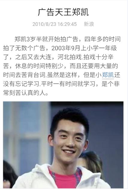 郑恺是怎么出道的? 郑恺1986年出生于上海,毕业于上海戏剧学院表演系,做过主持人、拍过不少电影、电视剧。之前演过赵薇导演的电影《致我们终将逝去的青春》,让我们记住了那个爱憎分明的许开阳。那要说郑恺是怎么出道的,看下图就知道了。 3岁半就开始拍广告,出道这么早,这可是名副其实的小童星。在一次访谈节目中,郑恺曾透露早些年四处辗转拍广告的一些经历,他一到面试现场就会听到有人说:“郑恺来了,我们走吧。”凡是他到过的广告面试现场,其他人根本没戏!那些年代久远的广告你还记得吗? 这饼好吃吗 一个关于牙膏的广告,当年总在电视剧最精彩的时候插播确实不讨喜。 郑恺是不是喜欢杨颖 郑凯对杨颖并没有男女之情,所以谈不上喜欢不喜欢,因为郑凯目前喜欢的是新女友程晓玥。 明星无隐私,感情生活也是引人关注的。郑恺和新女友程晓玥的恋情早就不是什么秘密。前段时间还和女友程晓玥一起参加了江苏卫视恋爱情感节目《我们相爱吧》,戏里戏外透着甜蜜,可以看出,俩人感情好着呢。所以大家还是不要妄加猜测了。 一起喂鸽子,甜蜜自拍 为女友擦拭嘴角,晓玥眼中满满的幸福 |