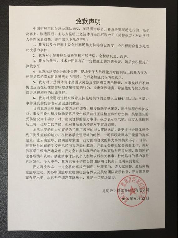 像篮球、足球这样的竞技赛场,双方球员有矛盾是很正常的事情。但是如果不能友好的沟通并解决这些矛盾而发生肢体冲突就不应该了。街球王吴悠在云南被群殴事件虽然过去好几年了,但是依然让人记忆犹新。