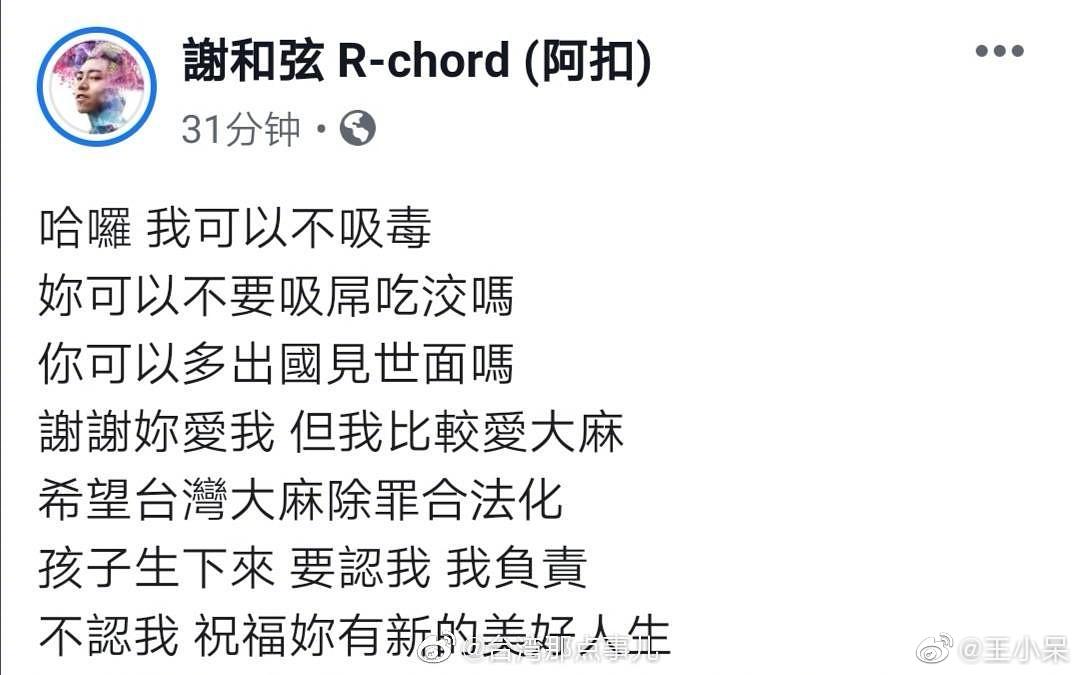 1987年4月15日出生的谢和弦今年已经过了而立之年,32岁了,但是而立之年的他并没有立起什么有起色的事业,反而立起了一个非常不好的人设,那就是吸毒打老婆!关于他吸毒的事其实早就被曝光过一次,她的媳妇以为他能痛改前非,没想到迎来的是变本加厉,于是他媳妇Keanna愤然举报了他,将其送进了看守所!