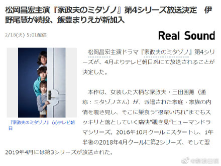 最近,日媒爆出《家政夫三田园》第四季将会在四月份播出,而新人家政妇将会由饭丰万理江饰演。相对于韩国演员来讲,日本演员可能很多小伙伴都不太熟悉,今天就让小编给大家介绍一下吧。