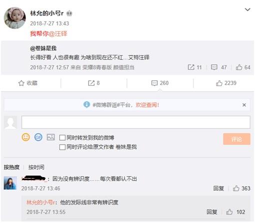 汪铎是郭敬明公司的吗, 汪铎是郭敬明公司的。他的经济公司正是郭敬明成立的“上海最世文化发展有限公司”。这个很多人都知道,之前有媒体拍到郭敬明和汪铎一起看电影,还有粉丝调侃过汪铎和郭敬明的关系,说是疑似新欢汪铎,还引的郭敬明发微博澄清,甚至用上了“我个人如果和汪铎有什么超过普通朋友和工作之外的一丁点关系,我全家暴毙,出门被车撞死” 当初汪铎刚出来的时候,郭敬明也捧了他好一会时间,新人汪铎也的确不容易,可能郭敬明这个老板对于自己的员工都是比较亲切的,不过广大粉丝是娱乐至上的,所以直到现在,汪铎留给大家的印象,居然大多是郭敬明的新欢。 他为什么不红? 汪铎不红,也是奇怪了,按说小伙子长相帅气,性格也好,出场就是郭敬明的电影,还是大家期待已久的《爵迹》,不说这部小说有多少粉丝了,光是这部剧里面的众多明星,也能带动其他演员红起来了。 但是汪铎一直都不温不火的,就连林允都发微博感叹,汪铎长得好看又有趣,怎么没有火起来呢。结果评论就有人说,他没有辨识度,林允赶紧又辩解说他发际线非常有辨识度。 不管怎么说,汪铎长相的确是辨识度比较低的,没有什么特点,不能让人一眼望去能记得住,这是他不红的具体原因,当然还有运气,背景等等根本原因。 |