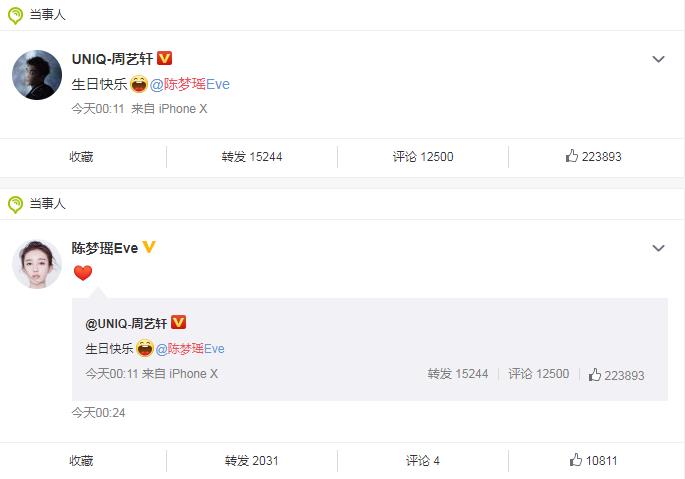他1990年12月11日出生,今年29岁了,不少粉丝关注他的感情情况,今天看来有答案了。在2020年3月25日凌晨,周艺轩第一时间给陈梦雅发了生日祝福: