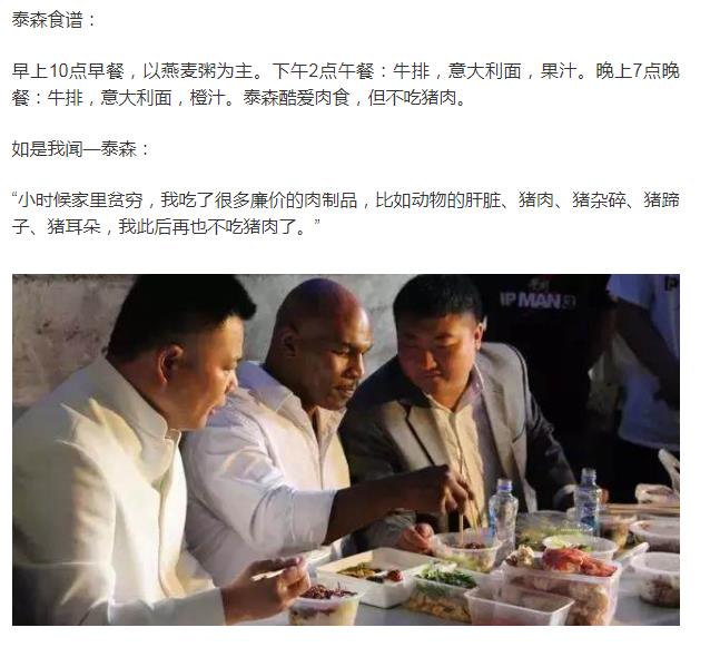 ![]() 不过今天咱们不谈泰森过去的荒唐事,还是谈谈她巅峰时候的一些故事,比如饭量,比如出拳的力量。 首先来看饭量,泰森巅峰时期身高178cm 臂展180cm 体重105kg 胸围119cm ,维持这样的体型需要严格控制好饮食,据说泰森每天早上要吃20个鸡蛋,每一个鸡蛋都配上一片培根,此外还要喝大量的麦片粥。 中午,泰森会喝果汁,吃意大利面和牛排,一顿饭可以赶上三个正常男子的饭量。 晚饭继续吃牛排和意大利面。 ![]() 另外,大量的训练有时候让泰森一天不得不吃四顿饭,三顿会饿,运动员的饭量大部分都用在训练的消耗! ![]() 这么强大的饭量和不间断的训练,让泰森在赛场上可以轻松的击败对手,他动作灵活,出拳力量非常的惊人,据说泰森可以打死一头牛,街斗可以打败15个壮汉! 坊间传言,他一拳的力量可以达到惊人的800公斤,街斗直接一拳放到一个! 小编给大家找来了泰森一拳超过800公斤的比赛视频,这么恐怖的力量,让对手几乎都在30秒内被KO了! |