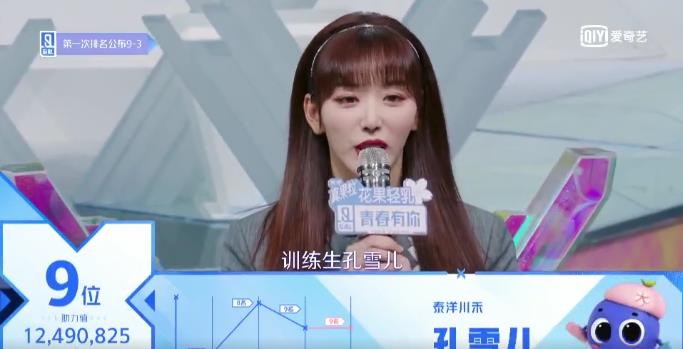 孔雪儿在青春2上获得了第九名的好成绩,哽咽发言感谢粉丝、导师和自己的朋友们,孔雪儿在一路黑的情况下走到现在真不容易,粉丝间传言她品德不好,还被JYP开除,不过后来证实是在twice出道前合约到期了才离开jyp回国的,根本不是因为自己品德不好被劝退的。