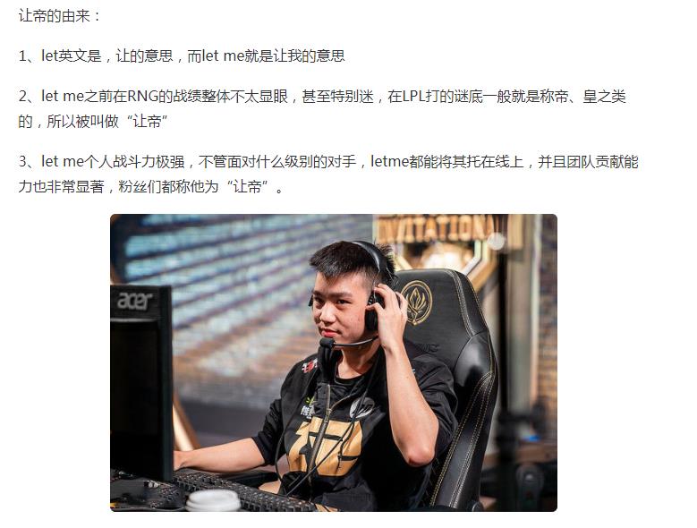![]() Letme在职业生涯中有很多经典的比赛,比如在2018年6月30日的英雄联盟LPL夏季赛中,RNG战队和IG战队进行最后的精彩对决,在17分钟的时候下路爆发了一波5V5的经典团战,而在这波团战中Letme用石头人发了大招一下子撞倒四人,帮RNG扭转战局,当时的战役非常经典! 当时的比赛视频给大家找来了 关于letme,还有一些非常有意思的八卦,比如他的千奇百怪的外号:the让、羊王、羊来,土拨鼠,今天咱们一一给大家解答下: 第一、the让。 实际就是跟大家喜欢叫她的让帝一个意思,let 英文就是让的意思,所以大家叫他 the 让。 ![]() 第二、羊王、羊来。 这是主要是letme当年使用英雄奥恩而来的梗,奥恩的R技能是召唤一头羊,letme使用奥恩总是能有一种化腐朽为神奇的感觉,刷新大家的认知,所以大家都叫他“羊王”,这个跟“养来”的梗出处是一样的。 ![]() 第三、土拨鼠。 他在一次直播的时候,不断的大声吼叫,像极了那个土拨鼠大叫的动图,视频在下面,大约是40秒开始,大家看看吧,他土拨鼠的外号就是这么来的了。 来大家看看像不像 ![]() |