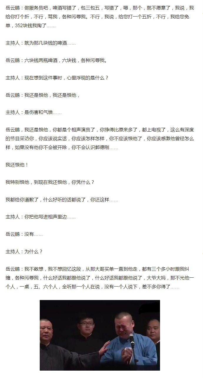 大家都知道岳云鹏以前刚到北京的时候是餐馆的服务员,后来因为一次餐馆的表演被赵铁群发现后推荐给郭德纲,从此在郭德纲的培养下,一路走红,成为大腕,福布斯的最新一起中国明星影响力排行榜中,小岳岳排名93名,是中国百大明星之一!实力不俗,赵铁群就是岳云鹏口中那个第二个要感激的人。