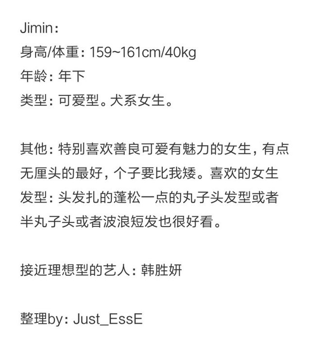 朴智旻为什么叫朴33、人间扳手、糯米团子 近日,防弹少年团成员朴智旻获得了最佳舞者“DABEME BEST DANCERS 2020”第一名的桂冠,这已经是他第二次获得这样的成绩,可见他在世界上的影响力。 朴智旻被叫做朴33是因为在防弹少年团新歌FIRE的mv中,在第3分钟33秒,朴智旻跳的是C位,这段舞蹈很震撼朴智旻也因此圈了很多粉,所以他被叫做朴33。 朴智旻被叫做糯米团子是因为他脸上肉肉的,而且皮肤白白嫩嫩,笑起来眼睛弯弯的特别可爱,再加上奶声奶气的声音,太像一个糯米团子了! 被叫做人间扳手是因为朴智旻太过迷人,很多直男粉都纷纷被他迷倒,被他掰弯。 他的理想型女友是谁? 韩国曾经组织过一次女生在爱豆中选择自己的理想型,得票第一名的人就是朴智旻,看来他在韩国的人气真的是很高。不止是因为他跳舞的时候非常有魅力,更因为他的人品非常好,谦和低调而且对粉丝很暖心。 当然了,朴智旻的理想型也是这些小迷妹们关注的焦点,那么朴智旻喜欢什么样的女生呢? 他自己曾经透露过自己喜欢的女孩子类型,他喜欢善良可爱有魅力,个子比自己小的女生,扎着可爱的丸子头又有点搞笑。小编突然想起来应采儿,大概应该就是这种类型的女孩子吧。 下面是韩胜妍的照片,大家可以对比下自己是否接近他的理想型呢? ![]() |