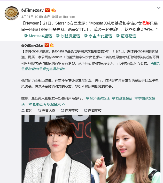 前几天网上发出了苞娜和Monsta X的基贤恋爱五年,还没出道就恋爱了?刚想发表一下惊诧呢,很快就有了官方回复:人家只是一个属社的前后辈关系。想也是啊,什么保密措施能做到五年不被发现。可能是因为两人颜值太般配,苞娜太可爱,所以被粉丝给幻想了,苞娜为什么是102女孩、公主?还有苞娜雪娥为什么关系尴尬。