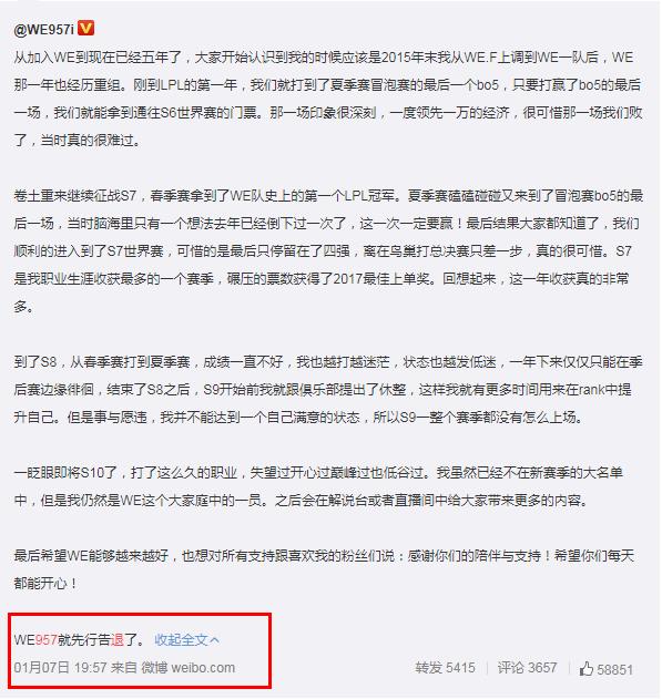 ![]() 关于柯昌宇957有非常多有意思的外号,比如:腿哥、猫皇、退就是哥,下面咱们一个个给大家讲讲这些外号的来历: 1、腿哥。 腿哥这个外号是在2017年的洲际赛的时候开始传开的,当时的比赛异常激烈,WE战队表现很差,还好在957的带领下,最终成功逆转战局取胜了。取胜的时候,主播激动的称赞957是全队的“大腿”,队员们抱大腿最终取得了胜利! 也就是这个时候腿哥的称呼就悄然的落在了柯昌宇的身上。 ![]() 2、猫皇。 首先猫皇不是957哟,猫皇是解说cat,本人叫吴尧,1995年8月11日,虎牙的签约主播;把957说成是猫皇主要是两人有一次一起参加一次解说,结果两个人都戴着圆眼镜、都穿着马甲,然后侧面看的照片成了下面的样子。 然后大家看看弹幕是怎么说的吧“穿马甲的是猫皇”“戴圆眼镜的是957”,好了这么一说是不是直接傻傻分不清谁是谁了?? ![]() 3、退就是哥,这个主要是今年1月7日957退役后大家给的梗,他说自己要先行告退了,是“退”不是“腿”了。 ![]() 此外,大家都知道957是浙江省台州市仙居人,就是仙居市的人,他的957的名字也是因为九宫格输入法仙居人的第一个字母分别位于957上。 目前退役转型做解说,因为疫情的缘故还没有正式公布自己在哪个平台直播。 他的微博地址是:https://weibo.com/p/1005056020888281 在微博上他非常活跃,大家可以随时关注他的动态。 ![]() |