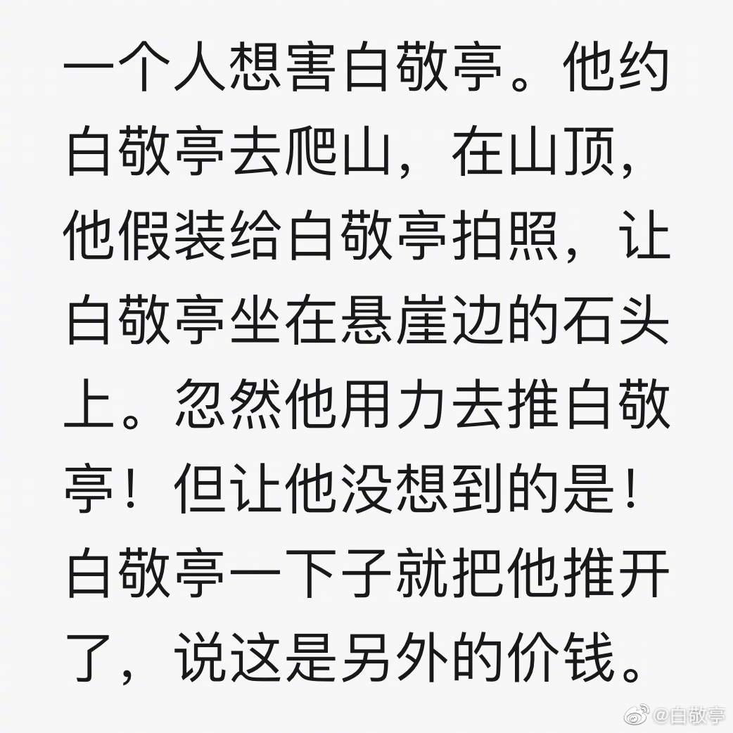 ![]() 这个梗的核心是“这是另外的价钱”如果你不懂这个梗的出处,你可能GET不到笑点,这个梗是出自《明星大侦探》第二季第十二期收官派对(上),在这一集中,鬼鬼问白敬亭是不是被潜规则了,一开始白敬亭是坚决否认的,然后他说当时小盒子紧紧地抱住了我,但是我一把把她推开了,因为“这是另外的价钱”,用梗巧妙的化解了尴尬。下面是当时的动图 ![]() 白敬亭在微博上发出这个梗后,网友纷纷玩起了白敬亭的其他的梗,比如这个人刚准备要把白敬亭推下山,白敬亭突然变成了“白敬龙”;还有这个人在给白敬亭拍照前不是要摆姿势吗?动了白敬亭的鞋,然后白敬亭说“不要动我的鞋”,不要动我的鞋是来自白敬亭“不要动我的大勋”,是浙江卫视的一档综艺节目上的梗,当时的图如下: ![]() 然后还有网友说,爬的这个山实际是敬亭山,总之白敬亭的各种五花八门的梗都跟秦昊推老丈人和丈母娘下山给联系在一起了,并且怎么推都是推不下去的,然后网友戏称“白敬亭是张东升的克星”。 ![]() |