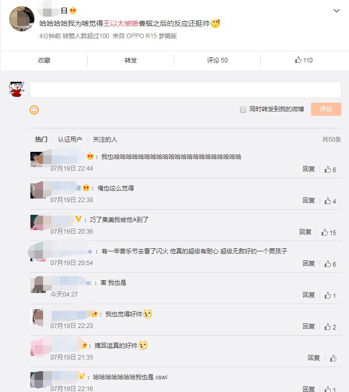 当然,也有还有不少迷妹被王以太喷香槟之后的反应帅到。
