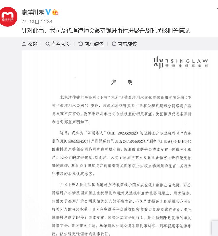 前不久泰洋川禾发出声明,称对于造谣的几位豆瓣用户一一拎出来,要实行法律追责,严正表明自己没有洗钱,这个事情在网上争论很久,对于泰洋川禾的洗钱真假,更有对泰洋川禾这个公司的幕后老板的猜测,其实还有很多部分网友是比较懵的,泰洋川禾是啥,跟陈赫、黄晓明是什么关系?泰洋川禾的老板到底是谁?