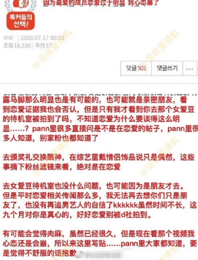 最近,据韩国网友爆料GFriend队长金韶情和Steven的尹净汉疑似在谈恋爱,因为两个人在颁奖典礼互换眼神,佩戴情侣款首饰,不过只是猜测并无实锤,也有网友表示两个人现在同公司谈恋爱也很好啊,方便。