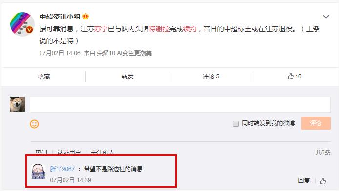 特神特谢拉果然没有令球迷失望,在8月9日苏宁和富力的这场比赛里面,他一个人独进2球梅开二度帮助苏宁2:0战胜了富力。苏宁目前四场比赛无一失利三胜一平,昂首前进!本赛季苏宁目前的积分是10分位列榜首,接下来苏宁将迎战上海绿地申花,让我们期待特神更精彩的表现!