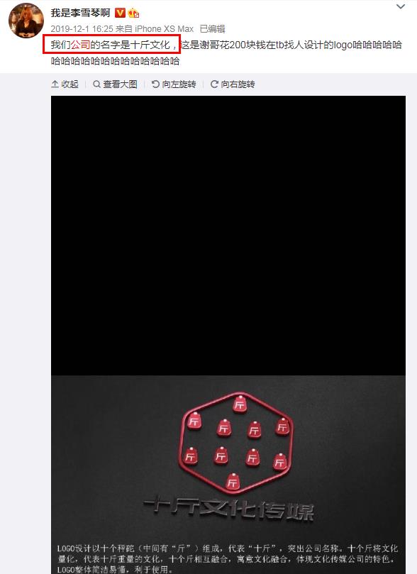 ![]() 当年吴亦凡回应她的镜头 ![]() 在《女生的内心戏有多丰富》上,她写的是自己跟老板的故事,据悉现在李雪琴在北京十斤文化传媒有限公司,这个在2019年12月份李雪琴曾经在微博上说过,他们公司的LOGO竟然是老板谢哥花了200元在淘宝上请人制作的。 ![]() 另外,通过天眼查可以发现,十斤文化的老板不姓谢,而是叫李雪阳,但是跟十斤文化有关联的一个沈阳嗨趣文化传媒有限公司老板姓谢,叫谢田飞,小编大胆的猜测,李雪琴口中的谢哥应该就是谢田飞了,下面是谢田飞本人的照片,是个大帅哥,而谢哥身后就是那辆被李雪琴点烟烧了窟窿的150万的奔驰车。 ![]() ![]() 怪不得令李雪琴想入非非,谢哥太帅了! ![]() |
