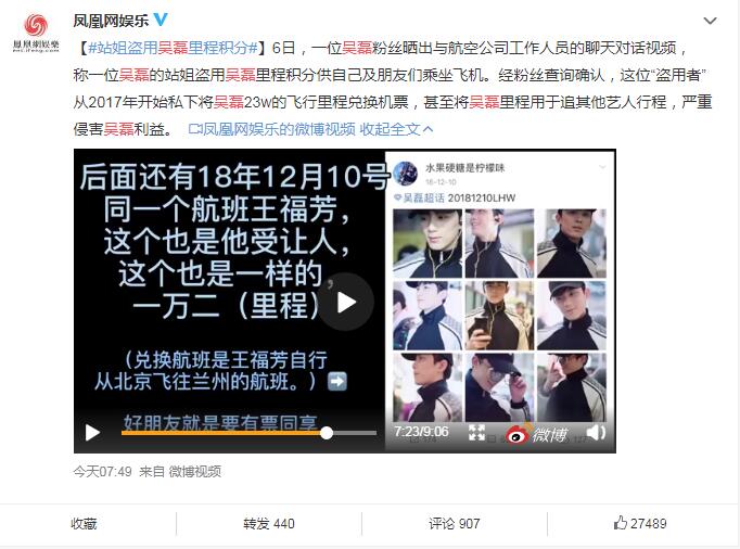 今日,有站姐盗用吴磊飞机里程积分,兑换飞机票一事登上热搜,据了解,盗用积分的是吴磊的资深站姐,而打电话给航空公司并曝光此事的人是吴磊的另一位站姐,网友们不免细思极恐,站姐们是怎么能知道明星们的具体行程?甚至私人账户?又是怎么能在航空公司私自查询明星的私人信息?