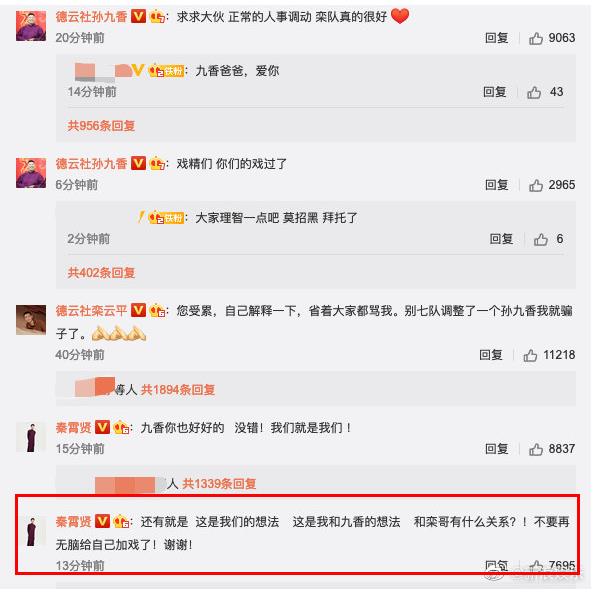 德云社孙九香和秦霄贤在一起三年了,近日传出两个人拆队不再合作的消息,此消息一出很多粉丝对此表示惋惜,毕竟两个人合作的还是比较成熟的,三年下来积累了很多忠粉,感觉有点好不容易熬出头却放弃的感觉,还有人将此事怪在德云社头上,认为是强行拆散两个人的,对此栾云平给出了详细的解释。