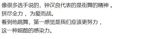 钟汉良街舞水平怎么样, 钟汉良街舞水平很一般,说真的作为钟汉良的粉丝,也很难昧着良心说他的街舞很棒,甚至有网友表示钟汉良代表的就是街舞的精神,他一个月就练好了街舞,水平能达到观赏的程度,已经是很不错的了,再加上年纪也确实不小了,本来街舞这种舞蹈就很耗体能,动作幅度大,对于年纪稍大,体质稍差的人来说,都是极其不友好的。 面对钟汉良,不管是从街舞背景来看,还是从现场表现来看,都是水平一般的,但是这种精神也的确值得大家去学习,本来钟汉良是有一定的舞蹈功底的,经过个把月的恶补知识和锻炼学习,街舞水平虽说很一般,但是照着这个认真程度和人生历练,应该也比普通街舞人员好一些吧。 街舞3他有资格当导师吗? 《这就是街舞3》请了钟汉良来当导师,评论分成了两极化,刚开始说不好的人居多,因为钟汉良自己的街舞水平有限,但是节目进行到这个程度,因为前面的一些事件,没有地位很高的人来支撑,节目很快就会消沉的,是不得不请一个压场子的人来,钟汉良已经是节目组想到的最好的人选了,单单按照钟汉良的街舞水平来评论他是不是有资格当导师是不公平的。 ![]() 其实照着钟汉良的这种街舞精神,感染力,认真程度,以及在娱乐圈的地位人缘等等,都是有资格成为导师的,何况这还是节目认可的,那都是专业人士综合考虑过了的,怎么就没资格当导师了。 |