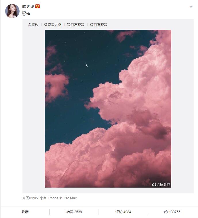 四年前乔任梁因抑郁症结束了自己年仅28岁的生命,他的好友陈乔恩连续四年再忌日时发粉色天空纪念好友