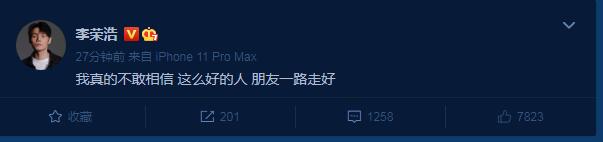 得知黄鸿升去世后李荣浩也第一时间发文悼念。