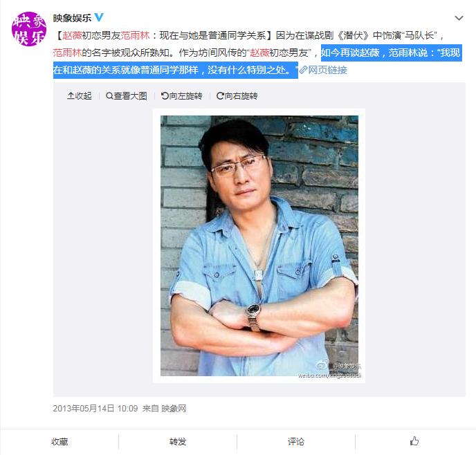 初恋对于很多人来说都是很难忘的,不过有的初恋可能并不是那么美好,比如说赵薇,这位女明星的绯闻算不上很多,但是几乎每位都被大众熟知,赵薇的初恋叫做范雨林,也是一位演员,虽然名气不如赵薇 ,但是演技却不差,那么范雨林和赵薇分手的原因是什么?范雨林和吴京长得很像吗? 赵薇和范雨林是同学,他们都毕业于谢晋艺术学院,当时赵薇美丽可爱、范雨林高大帅气,在学校有着极高的人气,被同学们称为“金童玉女”,不过后来因为赵薇的走红,两人聚少离多,感情慢慢变淡,就这样结束了这段感情。 不过这段恋情所带来的风波却还在继续,当时赵薇正当红,关于两人的绯闻一直传的沸沸扬扬,赵薇在一次接受采访时甚至大骂范雨林,说了一些不太好听的话,被报刊报道出来后,范雨林受到了舆论攻击,毕竟当时赵薇真的很红,因此范雨林直接一纸诉状把赵薇告上了法庭,后来事情越闹越大,据说赵薇粉丝以死威胁范雨林撤销诉讼请求,范雨林考虑之后选择了撤诉,至此事件告一段落。 这件事其实很难说清是非对错,只不过一对初恋最后差点对簿公堂,实在是一件很伤感的事,而范雨林现在依然在拍戏,但是因为名气的原因,出演的大都是配角,比如说《潜伏》中的马奎、《三国》中的孙坚等,很多人都说范雨林和演员吴京很像,但是小编觉得,其实范雨林更像是壮硕版的吴京,不得不说范雨林的身材真的很好。 上图为范雨林,下图为吴京,两个人确实很像,特别是硬汉的气质!
