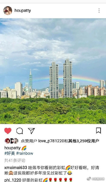 在前段时间,昆凌在社交平台上发布了下面这样一张照片,美丽的建筑、美丽的彩虹 ![]() 不久后有网友发现侯佩岑也在自己的社交媒体上发布了这样的一张照片,一模一样的图 ![]() 这样撞图事件发生后,网友、营销号们纷纷大胆猜测,两个人的图是不是周杰伦发给他们的,周杰伦觉得好看,就分享给了自己“心爱的女人”,毕竟侯佩岑也曾经是周杰伦的前女友。不过事后昆凌、侯佩岑方面都迅速给了澄清,昆凌说这图不是周杰伦给的,是建筑商觉得好看给我们的,而侯佩岑则说“求你们放过我吧 下次我不会再po彩虹图了”。 ![]() 据悉,周杰伦和侯佩岑两个人曾经在2005到2008期间有过一段交往,当时恋情非常的甜蜜,不过最终被“搅黄”。 ![]() |